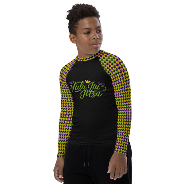 Vida Jiu-Jitsu Mardi Gras Rash Guard (black version) in Youth sizing